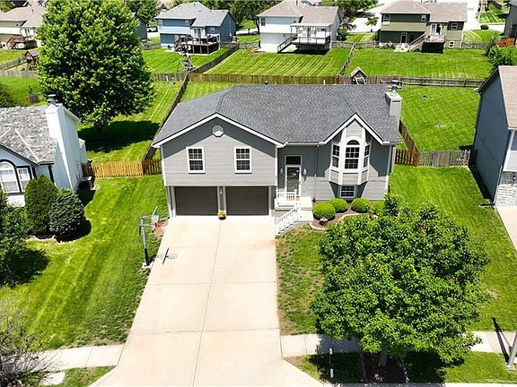 Welcome to 9202 NE 115th Ter. A beautiful split entry in the Hunter's Glen Subdivision (non-HOA side) with an unbelievably large fenced-in backyard and a killer deck, great for entertaining friends and family! As you walk in you will be greeted with tall vaulted ceilings in the living room. Laminate flooring all throughout main floor and hallway! Kitchen/Dining room combo with enough space for large dinning room table. Tons of cabinet space with a large pantry. All appliance stay including washer and dryer. Tons of storage space with functioning attic and storage under the stairs in the basement. Deep two car garage allows for additional storage as well. Downstairs rec room provides an additional entertainment area! Come see all this home has to offer.