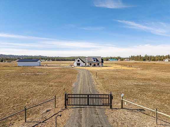 Stunning Newer Farmhouse on 9.97 Acres with Shop & Views! This zero-step entry 5-bed, 4-bath modern farmhouse blends luxury & functionality on nearly 10 acres. The gourmet kitchen features a large island, gas cooktop, double ovens, butler’s pantry with ice maker & newer appliances. The main-floor primary suite boasts a garden tub to unwind, large walk-in shower, double sinks & walk-in closet. Enjoy the main-floor laundry, dog-washing station & powder bath, plus an office/den & three additional bedrooms. Upstairs, a loft leads to a spacious bonus/recreation room & private guest suite with ¾ bath. Stay comfortable year-round with radiant in-floor heating, a new furnace & heat pump A/C. Outdoor living includes a partially covered patio & oversized uncovered patio. The new 30x48 shop offers a 10’x12’ door, concrete floor & 200-amp service. Landscaped, fenced & gated, this property provides privacy, space & breathtaking views. A rare opportunity for luxury country living—don’t miss it!