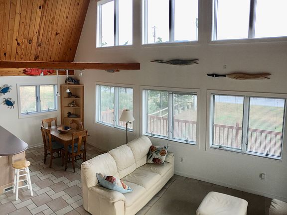 Enter the front door into an open and inviting kitchen/dining/living area with gorgeous, natural, high wood ceilings. A full bath and two bedrooms with expansive views of the refuge and direct deck access complete the first floor. The second floor features a master bedroom, full bathroom, large closets, storage areas and a private balcony.