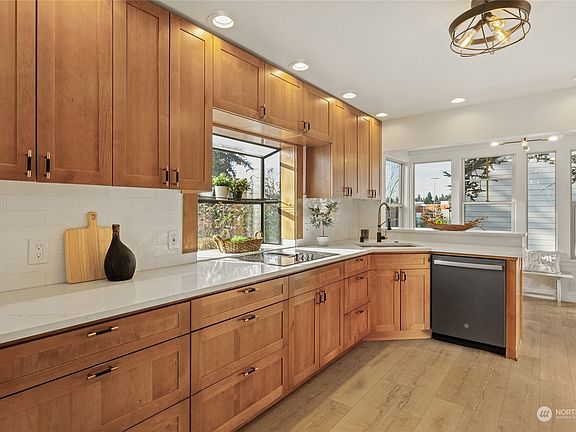 Welcome to this beautifully updated 1916 Craftsman, perfectly situated just north of Green Lake! Rich in character and elevated above the street, this home offers a rare combination of privacy & natural light. Inside, discover 3 generously sized bedrooms, & a fully updated kitchen combining modern functionality w/ ample storage. Timeless architectural details abound, from warm hardwood floors,  high ceilings and large windows. The open-concept layout seamlessly flows between the kitchen, dining, and living areas, making the space feel expansive and connected while maintaining the home’s signature old-world charm. Located for ultimate convenience, this home is minutes from North Seattle College I-5, Hwy 99, Northgate Light Rail, and more!