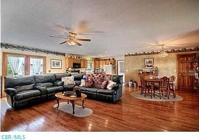 NICE RANCH THAT OFFERS 2.35 ACRES, STOCKED POND 15 ' DEEP AND A 30 X 40 POLE BARN. HARDWOOD IN GREAT ROOM & HALL. ROOF IS 8 YRS OLD. BASEMENT HAS FINISHED REC ROOM & 2 ADDITIONAL ROOMS. WALK OUT WITH SLIDERS. NEW FURNACE & HEAT PUMP, 5/2012. PRETTY COUNTRY SETTING.Master bdrm curtains & detached fireplace do not stay.