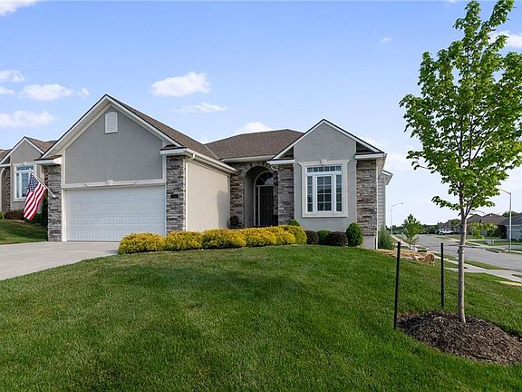 Prime location in KCMO with Liberty Schools, close to all amenities such as airport, grocery, medical, fitness centers, and main highways and interstate system. No more mowing lawns or shoveling snow-enjoy your extra time sitting on the two tier covered deck and pergola. All appliances stay with the exception of the washer and dryer. Hardwood floors, granite counter tops, fireplace, wet bar, storage, nice owner's suite with large bath with dual sinks-shower-tub-and nice size walk-in closet, 3 bedrooms, 3 full baths, and 3 car garage (double garage up front and a single on the side). This home is in impeccable condition and move in ready.