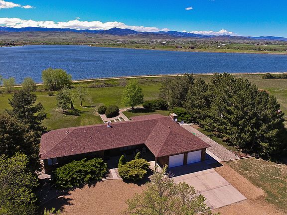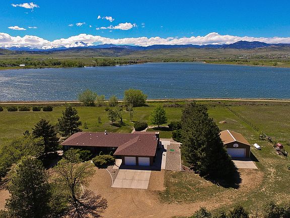 Beautiful home with amazing views of Longs Peak and Mt Meeker on tranquil 35 acre farm. 21X15 Fmly rm w/wood burning fpl, 13X19 living room w/wood burning stove, 12X12 formal dining, 10X14 eat in kitchen; Walk out basement w/24X26 rec room, additional 3/4 bath w/double vanity. Laundry rm 19X7, study on main level 10X11 w/closet. Master bath, hall bath & half bath on main level, three quarter bath in bsmt. 60 acres to east MLS 883113.Sprinkler system around house not on acreage.