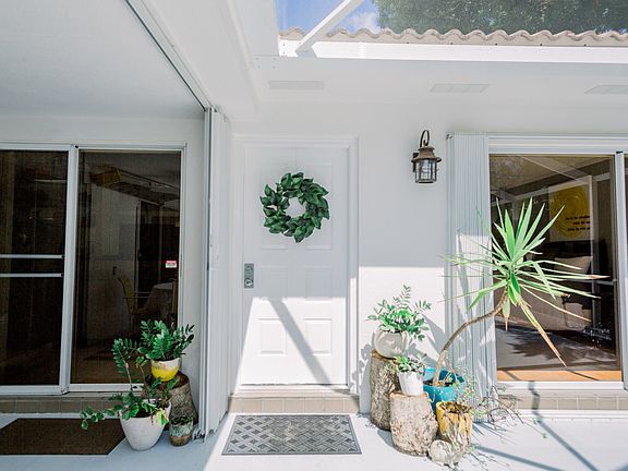 This 2 bed/ 2 bath Divosta built townhouse is perfectly placed in the quiet Sun Terrace at the Oaks community right in the heart of Palm Beach Gardens! Premium location at the back of the community with very private and tranquil backyard area. The open concept living area and kitchen has a wall to wall, floor to ceiling built in mirrored wall unit and vaulted ceilings. Each room of this split floorplan home has sliding glass doors that open to the massive 25 x 25 screened in patio, making the whole house light and bright. The roof was replaced in 2014, and the air conditioning system was completely replaced inside and out in 2014, patio has been freshly painted and sealed with newly installed over-sized gutters. Other features include accordion storm shutters, LG washer and dryer, stainless steel dishwasher, skylight and double vanity in the master bathroom, kitchen pantry, separate outdoor storage space, & upgraded flooring throughout the home. Neighborhood is pet friendly, with a large community pool, low HOA, and lots of lush green space and established oak trees throughout the neighborhood.