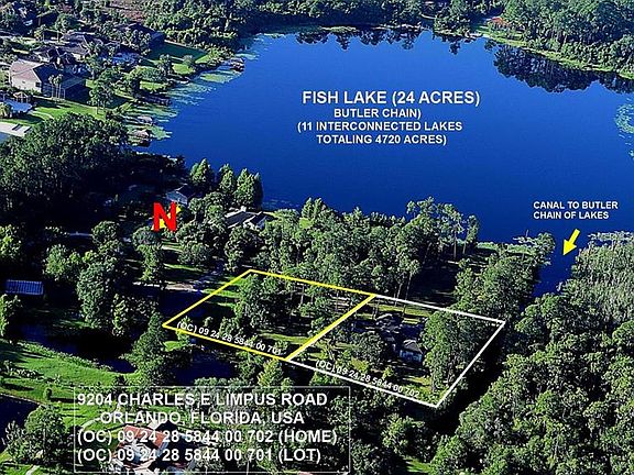Great opportunity for someone who is handy or wants to be on the chain of lakes for under $600,000. This home sits on almost 1.3 acres of land with over 400 feet of frontage on the Canal with access to the Butler Chain. There is a small island that is part of this property which was used a Helipad at one point. This is a one of kind piece of property. There is also another parcel that is being sold separately for $550,000 or can be purchased jointly with this property for $1.1 Million.
