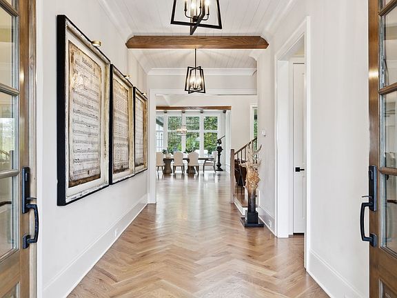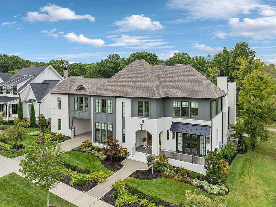 Incredible Stonegate built Contemporary French Chateau in The Grove! The home offers five bedrooms, five full baths and two half baths, with two of the bedrooms plus an office/playroom on the main level. Light white oak hardwoods throughout, walls of windows, and natural light abounds in this charmer! An enormous Chef's Kitchen will delight with Wolf appliances, including a six burner gas stove & double ovens, as well as two dishwashers! The expansive pantry features a full size wine refrigerator & tons of storage, while the oversized laundry room boasts a planning area plus two additional full size refrigerator/freezers. The second level has three additional bedrooms, each with ensuite bathroom, plus a huge Bonus Room with built-in bunk beds! A private Media Room/Den is located on second level. Four Car Garage-Fourth stall w/ Gym. Tree-lined synthetic turf back yard w/ putting green, outdoor Kitchen w/ grill and Big Green Egg. Just Steps from The Gathering Place & Bridge Bar grill!