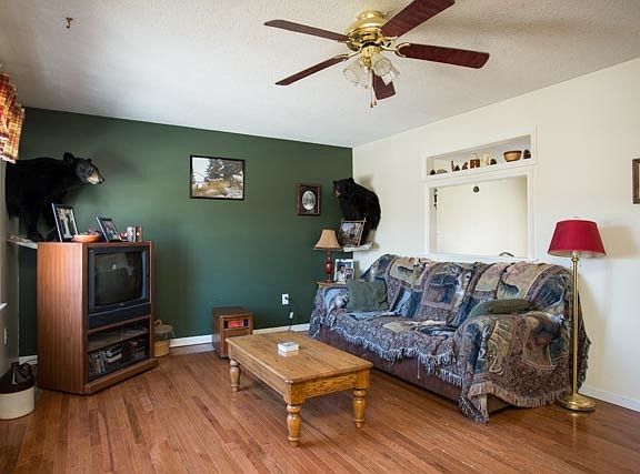 Hunting for that charming home with great views! Check out this fantastic ranch! Open living area with hardwood floors features a nice living room with pass through window to dining area and a lovely kitchen with plenty of cabinets and a convenient breakfast bar! Main level master suite with full bath and two additional bedrooms and a full hall bath. Attached side carport. Partially-fenced back yard, chicken coop and work shop! Unbeatable wrap-around views!