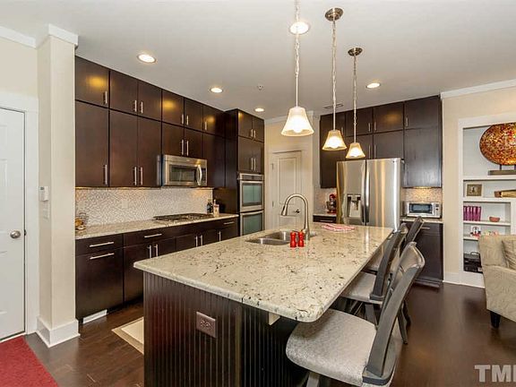 Sensational on Semana! This spacious 3 bedroom/3.5 bath Townhome is located in the heart of Brier Creek just minutes from shops, restaurants, RDU, & more. An open concept first floor, with chef's kitchen - dbl ovens, gas range, & kitchen island with sleek granite. Enjoy the 1st floor family room with built-in's & cozy gas fireplace, or stroll upstairs to the loft area, great as a sitting area or office. 3rd floor boasts an expansive bonus space complete with a full bath! 2 car garage + car port + patio!