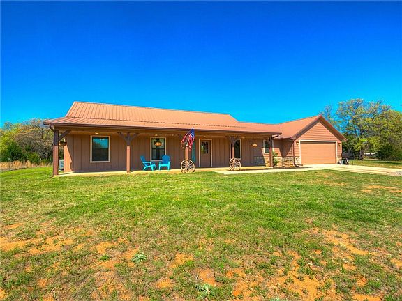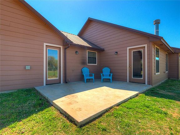 INCREDIBLE Find of 5 Acres MOL, 3 Bed, 2 Bath, 2 Car Insulated garage, includes Free standing electric range, vented microwave, dishwasher, 25 year Metal roof, 14 seer Air-condition, Granite tops in Kitchen and Bath, 200' water well, Zero Clearance wood burning fire place, Stone and carpet flooring, Siding and handcrafted stone exterior. The Back patio invites you to the large setting area with a Fire pit. The perimeter fencing is a barbwire/field fence on the North side and barbwire on the West, East, and about half of the South side. This one is PERFECTION and Priced to GO!