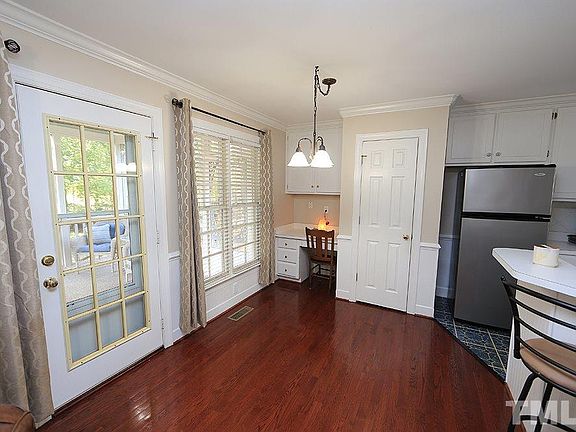 **HURRY** Don't miss this if you are seeking a home with screened porch looking out over a large serene fenced yard. 2nd level has 3 bedrooms and bonus. New roof 2017. 1st floor - new gas pack HVAC in 2017. Much of masonite siding has been replaced with fiber cement. Exterior painted 2017. Gutter screens 2019. Easy to work in kitchen w/separate laundry room nearby. Two car garage. Very convenient location to 540, shopping and Falls Lake. Enjoy nearby greenway to Durant Nature Park. Refrigerators/W/D stay.