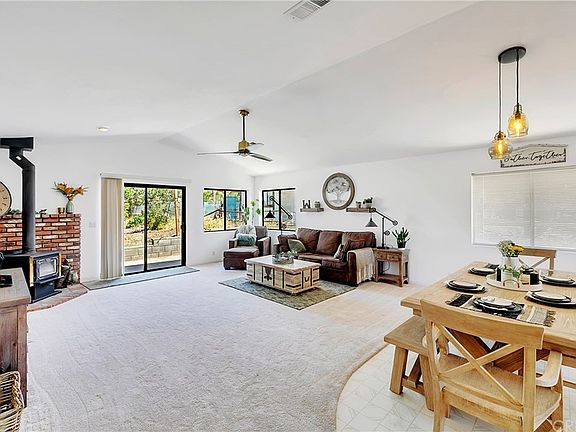 Beautiful single-story home in Pinon Pines Estates, one of the most sought-after communities in Frazier Park. Upon entry, you will notice right away this home is special! From the open living room, vaulted ceilings, wood-burning fireplace to the large kitchen with an abundant amount of cabinets. The giant kitchen island offers a great place to gather and the beautiful modern touches throughout the entire home are stunning. Both bathrooms have been recently updated with custom tile flooring and lighting. In the guest bathroom, you will also find a gorgeous new vanity. The master bedroom is light, bright, and spacious complete with an oversized walk-in closet. The garage offers direct access to the home leading right into the indoor laundry area. In addition to a 2-car garage, the garage has a bonus storage area to keep you well organized. You will enjoy the fresh mountain air life in the large backyard complete with fruit trees and plenty of room to play. The extra-wide driveway offers additional parking options as well. This beautiful home is surrounded by nature and hiking trails, just a short distance from Pyramid Lake!