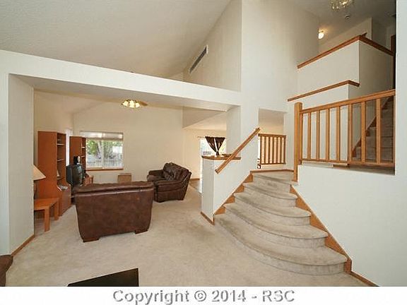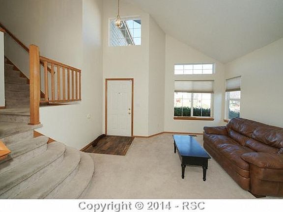 Great floor plan, nicely maintained! Kitchen features upgraded tile counters, lighting, new appliances & breakfast nook. Master retreat has attached bath w/ soaking tub, double vanity. Beautiful wood laminate floors in kitchen & dining room. Walk out from dining room to 20X12 patio which is sure to please. Yard has dog run w/ storage shed. Bsmt w/ approx. 300 ft of crawl space for more storage. Newer hot water heater, humidifier & attic fan. Central A/C, ceiling fans. Fresh interior paint. Near Ft. Carson & Peterson AFB.