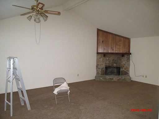 A nice surprise when you walk in, new carpet, paint, vaulted ceilings, tiled kitchen floor, stone fireplace, open kitchen to the family room, with a separate dining area. Nice bedrooms, close to everything, no pets, please call for our application information. agent must be at first showing.