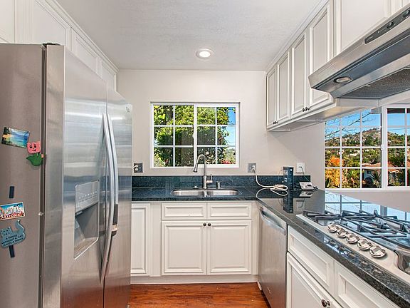 If you are looking for a semi private quality home located at the foothills of Casa de Oro with views if Mt. Helix then look no further you have found your new home! Very well kept home with a private driveway! Nice newer wood flooring in the entryway, dining room, hallway & kitchen. The kitchen boasts of newer stainless steal appliances. You will also find an Extra / Bonus Room 12x20 off of the garage (seller states no permits)