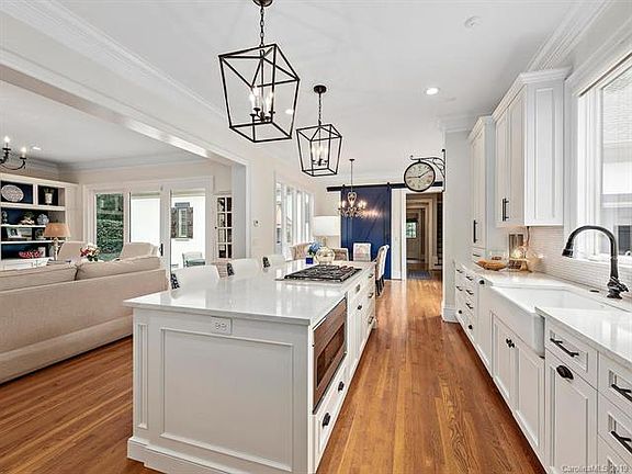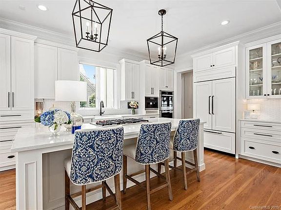 Refinished floors and new paint just completed! High quality upgrades featuring a newly remodeled kitchen and gorgeous wine cellar. The second floor boasts an impressive bonus room with amenities: full bath, fireplace, TV, and kids' play areas, room for a pool table, and a bar with a double Kegerator. The open floor plan is excellent for entertaining and ideal for buyers who desire high end features that blend seamlessly with the personal feel of the home's mahogany doors and crown molding. The downstairs master, dedicated office space, terrace, and Juliet balcony over the patio offer the rare combination of luxury, comfort, and utility. The neighborhood offers quite a bit of green space for playing and hanging out! Easy access to Blakeney, Waverly, Rea Farms, Ballantyne, and 485! The area is also surrounded by highly rated schools and fantastic community amenities (such as tennis courts, pools, clubhouses, sand volleyball, and walking trails).