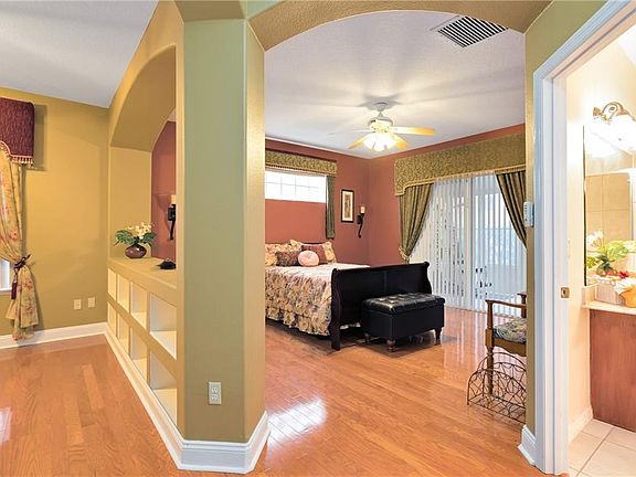 Move right in to this beautiful 5 bedroom, 2 1/2 bath home on over 1/4 acre in the quiet GATED COMMUNITY of Lake Fischer Estates. The open floor plan has a downstairs 18 x15 master bedroom with an adjacent 10x12 sitting room, all with wood flooring. Downstairs has a spacious eat-in kitchen with stainless appliances and granite counters that opens to large family room, plus a spacious open formal living and dining room. The kitchen offers plenty of cabinet and counter space, quality appliances, and opens to the family room. The master bath has dual sinks, a garden tub, and separate walk-in shower. The downstairs master provides privacy to secondarybedrooms, all located upstairs. Entertain guests & family in the extensive enclosed porch. ROOF is 3 years old. Dual A/C systems. New St Augustine sod. Lake Fischer Estates is located just minutes from Windermere and Winter Garden, and easy access to highways, golf, hospitals, sports and entertainment . Zoned for highly acclaimed Olympia High. This tranquil community also offers access to a wonderful fishing lake with a large private community pier, BBQ and picnic tables. Seller is offering Old Republic Home Warranty.