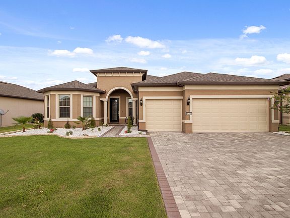 Luxury Retirement GOLF Community of Stone Creek! Home offers open floor plan with 3 bedrooms/3 baths+den/office w/french doors. 20' tile throughout. Includes stainless steel appliances in a fantastic Gourmet kitchen w/42'' staggered Toasted Antique cabinetry w/crown, pullouts and roll-out trays; refrig; conv oven; Counter tops throughout the home are all granite. Tall doors, rock landscaping; screened lanai; full gutter. Huge owner's suite w/tray ceiling and wood floors; master bath w/comfort height cabinets; make up vanity; shower w/shower seat, large master closet. Laundry cabinets, utility sink, Whirlpool front loaders on pedestals. whole house has Culligan water softener, irrigation control. Great for entertaining.