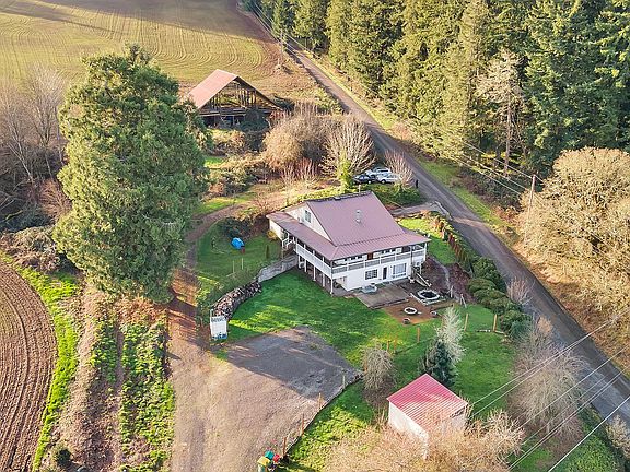 Charming farmhouse in the valley near the lake! This acreage property is set amongst a gorgeous farmland backdrop boasting sensational seasonal views. Own a spectacular piece of privacy while being just a short drive to vineyards, Henry Hagg Lake, the Lake Stop Grocery Store and Forest Grove.This home features many outdoor amenities, along with a number of updates inside. Dual living benefit with lower level living quarters. Large pasture, room for gardening, outbuildings, entertaining & more!