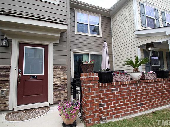 Luxury townhome Living in the heart of Brier Creek within walking distance to the local shops and restaurants. 1ST FLOOR END UNIT w/many upgraded custom features like none other. Solid oak bookcases in the living room, solid oak bar/china cabinet in the dinning room. Cozy fireplace opens to a kitchen - perfect for entertaining. Oversized Mstr w/luxurious bath. Finished Teen suite w/full bath on 3rd floor. Inviting Courtyard & front porch! Rear access for the two car garage w/Epoxy flrs. Wont last long