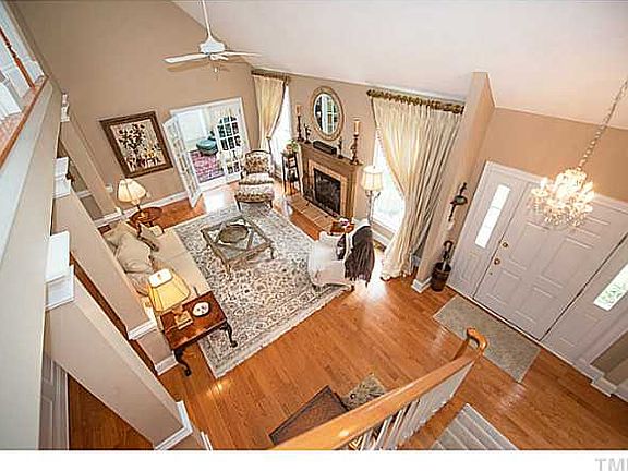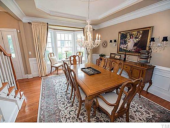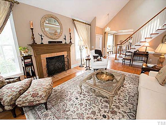 Stylish townhome in popular Brier Creek golf community! Partial brick townhome is loaded with upgrades! Walk to the clubhouse, pool and tennis. Minutes from Brier Creek shopping and convenient to HWY 540. Vaulted foyer with hardwoods. Staircase with hardwoods and carpeted runner. Formal dining room with tray ceiling, bay window, wainscoting, hardwoods, heavy crown and chair rail moldings. Two-story vaulted family room with overlook, columns, tiled gas fireplace, ceiling fan and hardwoods. Sunroom has cathedral ceiling, skylights, French doors and tile flooring – could be used as an office. Kitchen with 42" cabinets, granite, stainless appliances including a double oven and gas stove, tile backsplash, recessed and under cabinet lighting, walk-in pantry, breakfast room and tile flooring. Oversized first floor master bedroom has vaulted ceiling, fan, recessed lighting and Palladian window with plantation shutters. Master bathroom with dual marble vanities, whirlpool tub and tile flooring. First floor laundry room with tile flooring. Bonus room with skylights, recessed lighting, surround sound speakers, closet and an overlook to the family room. All bedrooms and bonus have walk-in closets. Secondary bedrooms are oversized and one could be used as a second master! Second floor has crown molding. Kitchen, master bedroom and deck are prewired for stereo. Security system and whole house networking. Oversized deck. Walk-in crawl space. Two-car garage. $1,500 reduction in closing costs through Carl Kiger at Corporate Investors Mortgage Group.