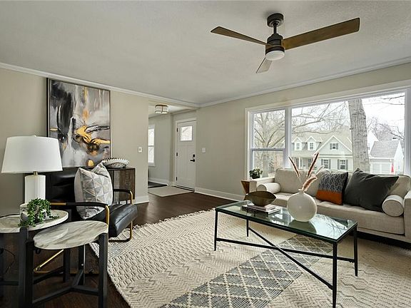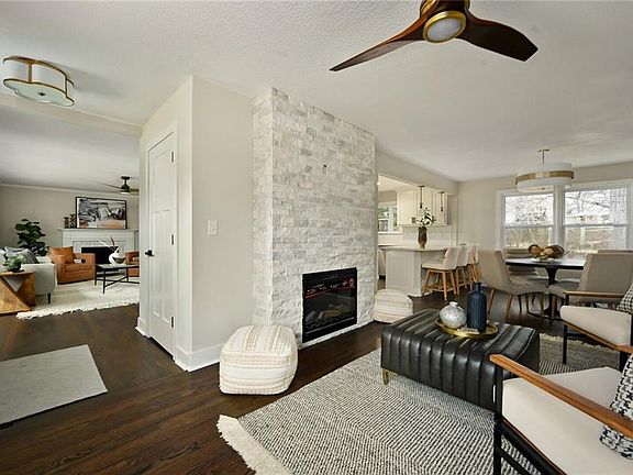 Stunning renovation in the heart of Old Leawood! Highly sought after location and ranch style home with 3 beds and 3 baths. Gorgeous kitchen with custom cabinets, quartz countertops, pantry, SS appliances. Wood floors throughout first floor. Cozy hearth room off kitchen with fireplace and second fireplace in spacious living room. High end lighting, ceiling fans, doors and cabinets throughout. All bathrooms remodeled and feature new tile, vanities, hardware and lighting. Finished lower level with rec room, full bath, laundry room and storage. New HVAC, water heater, windows, driveway, sidewalk and front porch. Minutes from Shawnee Mission schools, shops, Ranchmart and restaurants.