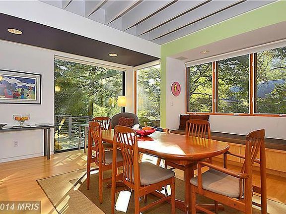 Exquisite expanded, renovated 4BR/3BA brick Colonial w/treehouse views. Floor to ceiling windows, green materials, upscale KIT, high end bathrooms. Contemporary elegance,style and explosive personality behind a reserved traditional facade. Welcoming front porch with swing and lovely details. Japanese garden, large open deck. Complete privacy in the heart of Seven Oaks.