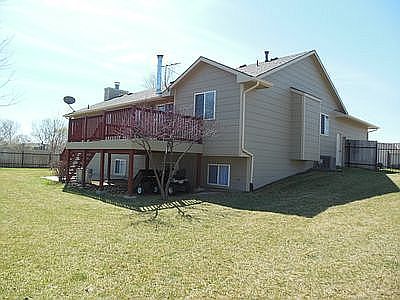 This 4 BR, 3 BA home sits in a quiet cul de sac with a huge fenced backyard. The home has an eat in kitchen and a formal dining space in the living room. The large master suite features his and hers closets. The split bedroom plan offers privacy. The living has a wood burning stove, vaulted ceilings and looks out over a large deck and wooded back yard with 2 garden areas lots of space for pets or children or both. Its easy to keep this yard Beautiful with a sprinkler system and a well. The large view out basement has a wet bar area, a Large storage room and a 4th bedroom and 3rd bathroom. New interior paint on main floor, new carpet in the 2 smaller bedrooms on main floor. Home is located in the highly desireable Maize South School District. SHOWINGS can begin at 1 pm on Saturday 7/25. The House will be held open on Sunday 7/26 from 2-4pm
