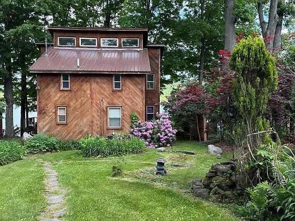 Incredible Waneta lakefront property! This is a year round contemporary home built in 1997. The impressive first floor is open to the second level, creating an airy and inviting atmosphere. The full, dry basement includes a sauna, ideal for unwinding after a day on the lake. Large first floor bedroom and full bath, 2-3 bedrooms upstairs with another full bath. Upstairs and down stairs decks with breathtaking views. Plus an additional building provides endless possibilities for a studio or hobby space. The home is heated with natural gas, hot water baseboard heat. The new Brazilian tigherwood dock conveys too!