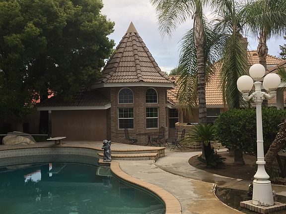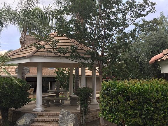 This SW home will take your breath away! Beautiful open living room w/ gorgeous floor to ceiling gas brick fireplace and tray ceilings. Home has two master bedrooms, 2 guest rooms and 3 full baths! Porcelain tile in the kitchen, dining and living rooms. Dining room has stunning bay window overlooking front yard. Bonus Room w/ wet bar and french doors that lead to backyard- perfect for entertaining. Resort like backyard has a large pool w/waterfall, gazebo w/electricity & wired for sound, covered patio and built-in BBQ. Newer OWNED Solar, newer AC w/ 4-zones & newer insulation. Pool House complete with ceiling fans & AC. Too much to mention, don't miss an opportunity to make this home yours!