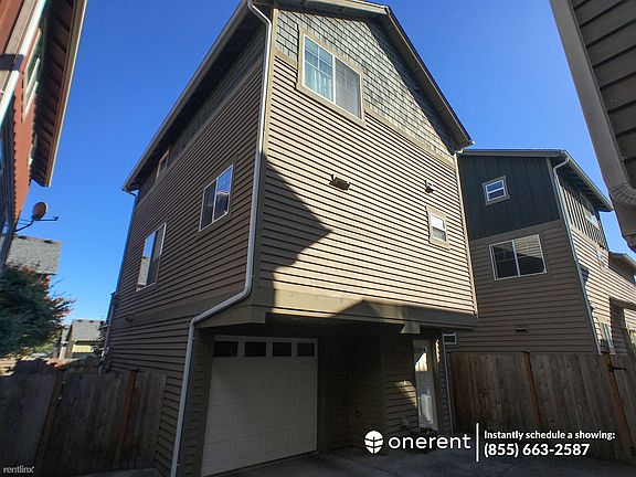 Spacious 3 bedroom 2.5 bathroom standalone town house with large sliding windows and a balcony with a great view of the neighborhood. Has a low maintenance backyard with a newly-built paver patio and raised garden beds. Interiors feature elegant vaulted ceilings, hardwood floors all throughout the main floor, a gas fireplace with access to the balcony deck, and warm toned walls. Kitchen has slab granite counter tops with breakfast bar, hardwood cabinetry, and stainless steel refrigerator, microwave oven, oven with range hood, and dishwasher. Masters bedroom has a walk-in closet. During colder days, this unit comes with forced air heating and tankless water heating. Garbage disposal, washer and dryer are in unit for your convenience. One car garage attached. Pets allowed: Cats only Nearest attractions: Woodland Park Bike Score: 80 Bus lines: 62, 82 0.4 miles E Line Metro Transit 0.4 miles 5 Metro Transit 0.6 miles (RLNE4858207)