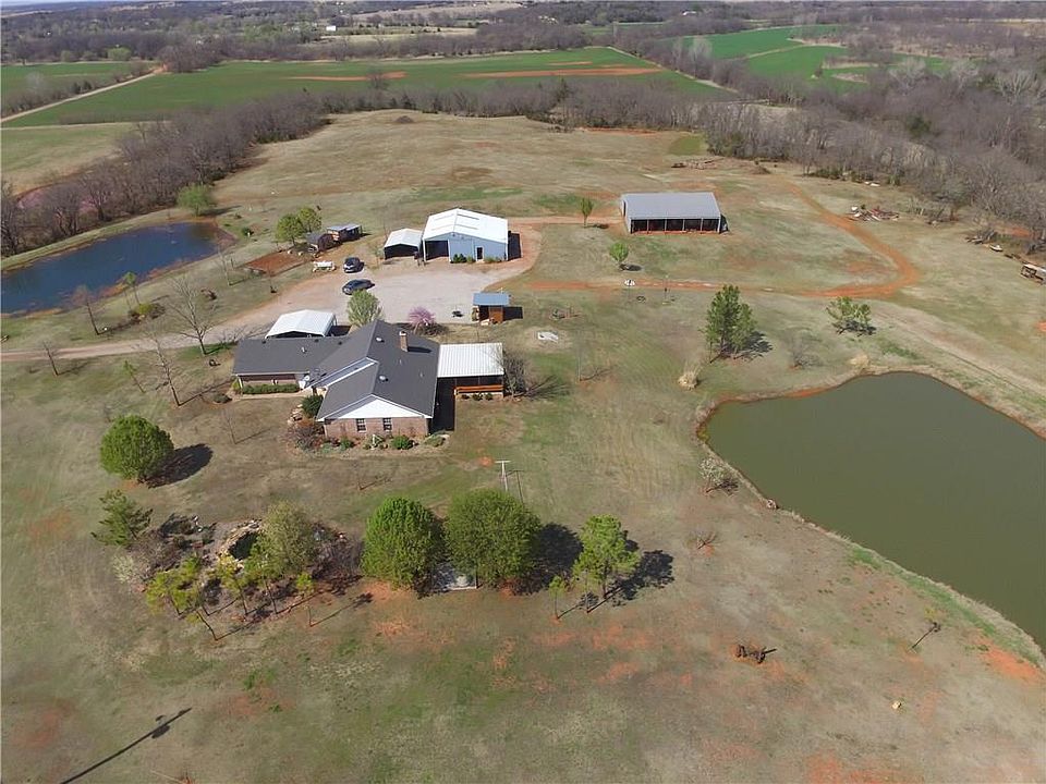 GORGEOUS 40 acre property all fenced with a gated entry! This property contains a very well taken care of 1801 MOL sf brick home built in 1997 with 2 bed and 2.5 baths, large pantry, and 2 living areas, a 24X22 covered patio overlooking one of the large ponds. The home is perfectly situated on the hill with awesome views. 2500 sf shop with concrete floors and electric, 50X50 barn with stalls, smokehouse all ready equipped with smoker, garden shed, storm cellar, fruit trees, 5 ponds, and much much more. Schedule your appt to see this beautiful property today!