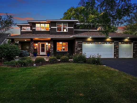 Spacious mud room off of the oversized three-car garage. Custom built-ins thru out. Luxurious primary vaulted suite, large walk in closet and corner tub with a separate shower. 3 bedrooms up and another full bath. Lower level walk out with 9 ft ceilings, a huge family room and built in wet bar. Full stone gas fireplace. 4th private, bedroom suite in the lower. Lots of storage space. Great location, close to Carver Park bike and walking paths. Highly desirable Hunters Crest. Choice Waconia or Westonka schools.