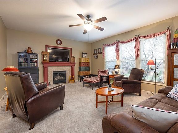 - Features: Carpet, Ceiling Fan(s), Fireplace, Wood Floor