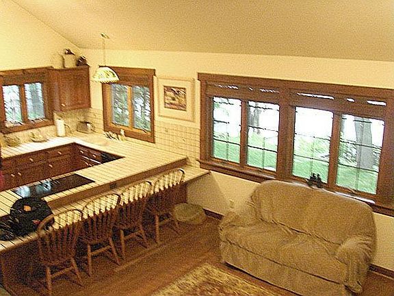 Quaint English influence in updated Pigeon Lake home w/turret foyer. Approx 4k of living space, 6 Bedrooms, 3 Baths. Huge modern Kitchen, Family Room can double as lg formal Dining Room, formal Ling Room, vaulted ceilings, ceramic tile & Hardwood Floors. Master Suite on main, Lower Level walk out w/hydronic in-floor heat, Bedrooms, Summer Kitchen, Family Room. Upper Loft/Study. 2.5 Car Garage. Panoramic view of lake. Private 3 season cabana-10x10, 70 ft sandy beach frontage, 42 ft T-shaped pier. Multilevel deck. Year-round home or destination getaway. Private well, sanitary district. Neighborhood Description Pigeon Lake is over 80 acres with waterskiing, swimming, sailing, canoeing, and fishing. Most of lake is over 20' deep with deepest spot at 67'. Abundant largemouth bass, large walleye, pan fish and northern pike. Home is within walking distance to 18 hole Autumn Ridge Golf Course.