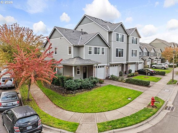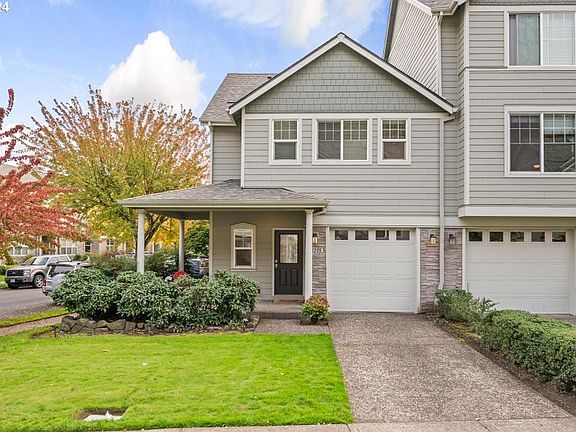 OPEN HOUSE SATURDAY NOVEMBER 9TH 10A-12P!!! Welcome to your perfect Tualatin Townhome. This townhome lives large with a charming covered front porch, fenced yard, attached garage, driveway parking, & only 1 common wall. Downstairs boasts a large living room with a corner fireplace and dining area open to the updated kitchen. Brand new plush carpet upstairs and laminate throughout downstairs. Upstairs utility with washer and dryer included. Roof installed 2024 and new H20 Heater 2020. One of the largest yards in the community with direct access from living room. HOA dues cover all exterior maintenance and front yard landscaping. Located in a quiet neighborhood just minutes from Tualatin Commons, Cook Park, WES Commuter Train and I5 access. It’s ready and waiting for you to make it your own!