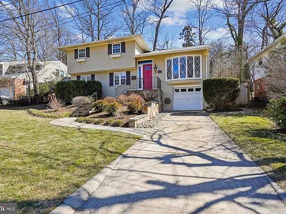 Welcome home to this fabulous renovated four-level split located in the highly sought-after Wyngate neighborhood! This stunning residence boasts great curb appeal with a slate and stone hardscaped entrance walkway, a charming staircase, and a beautifully landscaped front yard. Step inside to a light-filled living room highlighted by a large bay window and elegant hardwood flooring throughout.The gorgeous renovated kitchen is a chef's dream, featuring top-of-the-line stainless steel appliances, including a built-in wine refrigerator, aesthetically pleasing white cabinets, a subway tile backsplash, and granite countertops. The pretty French blue island adds a subtle pop of color, providing plenty of cabinet and counter space for all your culinary adventures. Entertain in style in the spacious dining room, which features new French doors that lead out to your backyard oasis. The upper level offers three bedrooms and two full renovated bathrooms, while the lower level includes a large, light-filled family room with new wood flooring, along with a generous bedroom suite and a renovated full bath. Both primary bedroom suites come equipped with double sink vanities for added convenience. The highlight of this home is the large four-season sunroom/solarium, showcasing views of the impressive hardscaped outdoor entertainment area, complete with a fire pit, a weatherproofed 55" TV, a sound system, a dining area, and cedar privacy fencing. An Amish shed offers additional storage space. The lower level also includes a laundry room and plenty of storage options, along with a one-car garage and driveway. Don’t miss out on this exquisite home – schedule your showing today!