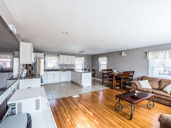 Charming brick ranch with newer updates including windows(2017), dimensional roof, bathroom with tiled shower and kitchen. Spacious open floor plan offers an eat in kitchen including breakfast bar, lots of natural light, hardwood floors in family room, hallways, and bedrooms with neutral paint throughout home. There is attic access with pull down ladder. Conveniently located mud room off kitchen includes laundry and access to yard and detached garage. 2 car garage with overhead storage also has additional side area for extra storage. Large yard includes a paver patio with gazebo, paver fire pit and an area that has recently been reseeded. Back yard is completely fenced in with a white vinyl fence.