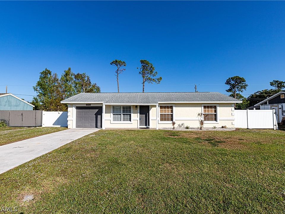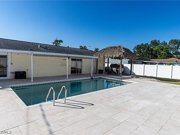 MOVE IN READY POOL HOME! Located in a quiet family friendly neighborhood. Absolutely stunning and Completely remodeled 3BR, 2BA, 1 Car Garage! Home has spacious rooms, tile flooring thoughout & sliders to outdoor living! The kitchen has new counter tops, updated appliances, breakfast bar & plenty of cabinet space. The owners suite features updated bathroom, Double sinks, and sliders to the pool deck. The outdoor living area was designed to entertain & features a heated pool and oversized Tiki Hut for cover. The backyard is completely fenced in to keep your furry friends safe! Neighborhood is non-gated, no restrictions & no HOA fees! Central water. New Roof in 2018! This home is centrally located and is close to Shopping, Entertainment, RSW, I-75, FGCU, Hertz Arena and Gulf Coast Beaches. New Roof and Shed in 2020! Schedule your private showing today! Owners willing to Negotiate the Furniture as well.