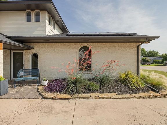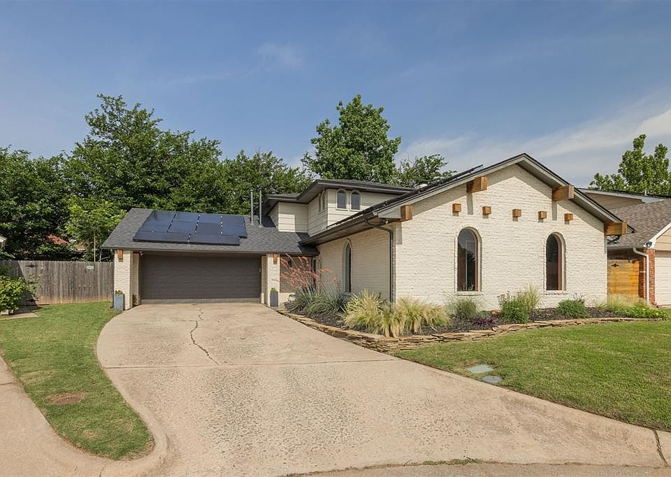 Welcome to 9209 Knightsbridge Rd—where mid-century charm meets modern sustainability. In the highly sought-after Lansbrook addition, this spacious 4-bedroom, 3.5-bath home spans 2,856 square feet and sits on a beautifully landscaped lot nestled among mature trees and scenic walking trails. Perfect for entertaining, the first-floor features two spacious living areas, formal dining room, eat-in kitchen, dedicated laundry room and a conveniently located half bath. You’ll also enjoy the primary suite with French doors that lead to the back patio, a master bath with double vanities, and a walk-in closet. Upstairs there are three additional bedrooms and two full baths providing space and privacy for family, guests or a home office. Built in 1972 and thoughtfully updated, this residence blends classic character with smart upgrades, including solar panels that have significantly reduced the electric bill and will be paid off at closing! Other updates include new flooring throughout the upper level living space (2022), a thoughtfully designed backyard remodel with professional landscaping (2022), new electric HVAC and ductwork upstairs (2023), and a new garage door and motor (2023). Step outside to enjoy Lansbrook’s incredible amenities: a serene private lake, four parks with playgrounds, a large community pool, and winding trails—all just steps from your door. With quick access to NW Expressway, Lake Hefner, and urban biking trails, you don’t want to miss this home!