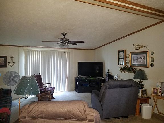 Very nice 3 bedroom, 2 full bath Four Seasons Home UNDER $80,000 in Dix Il. Large living room/great room combo offer plenty of space, eat in kitchen features center island with sink. Master bedroom with large master bath and walk in closet. The seller is offering a $3000 carpet allowance! All appliances stay. Septic was serviced in 2017. Features a 2 car garage, carport, above ground pool (needs new liner), and a storm shelter. Wrap around porch on front and large deck on back. Call today to see this home.