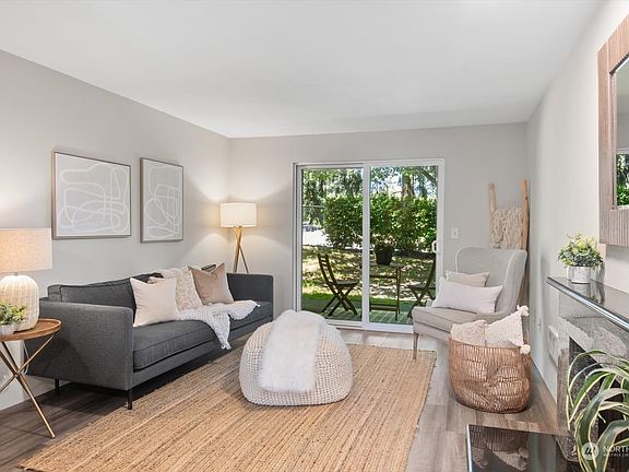 Dressed up from floor to ceiling,this sweet main level,zero step condo is ready for its prospects.Brand new luxury vinyl floors thru-out,fresh interior paint,all new kitchen appliances,new lighting thru out,pre-inspected & pretty much perfect.Unique to this unit is a re-worked kitchen w/wide open eating&entertaining space.Also,unit has a walk-out patio w/storage closet&grassy area beyond(pet perk)plus 1 designated parking spot.Located in a well maintained complex(building has new cement plank siding & new roof)w/ fantastic amenities including clubhouse,outdoor heated pool,sport court,plenty of guest parking AND excellent proximity to I-5,public transit,shopping&hospitals. No rental caps and VA approved!