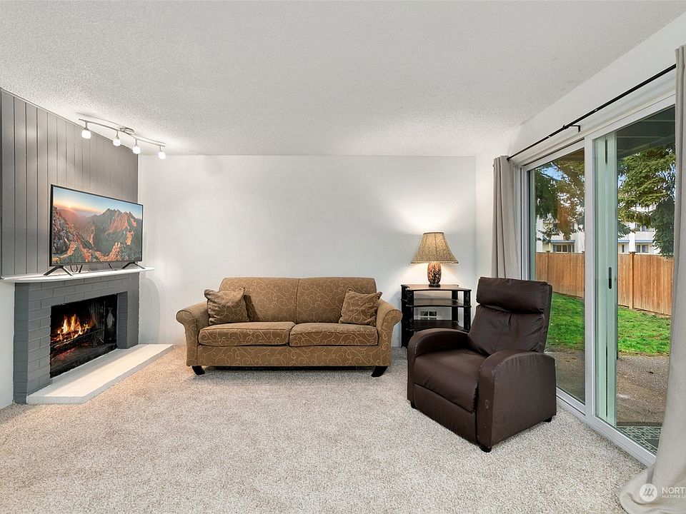 This lovely 1 bedroom 1 bath, ground floor unit has been updated and is move-in ready! Updates includes new carpet, new flooring, and fresh paint. The unit is bright and airy includes an inviting living room with a cozy fireplace. Galley kitchen includes all appliances with adjacent dining room, generously sized bedroom & stunning modern bathroom. Washer and dryer are also included. Nice private back facing covered porch is a great place to relax or BBQ! Convenient location EZ freeway access, next to lots of shopping and restaurants. Don't miss this one!