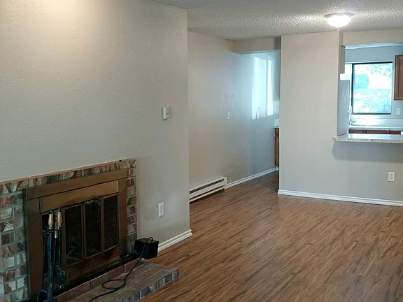 Ground floor unit has been newly renovated! Large 2 bedrooms, 2 full baths, approx. 839 sq feet, Fresh paint throughout, New laminate wood flooring, New carpet, Updated new bathrooms, new countertops and subway tile back splash, new dishwasher, stack washer & dryer in utility storage area. Wood burning fireplace, 1 reserved parking and ample parking for guests. Clubhouse offers community pool and hot tub. Rent includes water, sewer & garbage. Close to freeways & shopping. No Smokers. Small Pet C-by-C. Tenant screening and credit check required. $39 per person application fee. Portable screening reports not accepted.