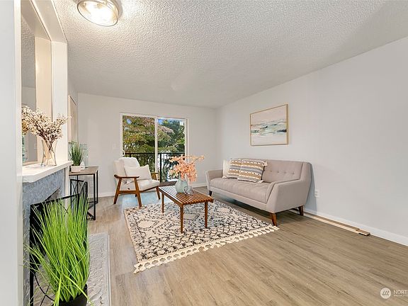 This is it! Fully updated 2-bed, 2 full bath condo is move-in ready. Brand new luxury vinyl floors, new carpets in bedrooms, fresh paint/hardware, brand new Quartz kitchen counters, stainless steel kitchen appliances, new modern adjustable lighting thru out. Primary bedroom features own full bath & large closet. Bright living space w/wood fireplace opens to a private covered deck w/storage closet & 1 designated parking. Located in a well-maintained complex (building has new cement plank siding & new roof, new windows/sliding door) w/fantastic amenities including clubhouse, outdoor heated pool, sport court, plenty of guest parking AND excellent proximity to I-5, public transit, shopping & hospitals.