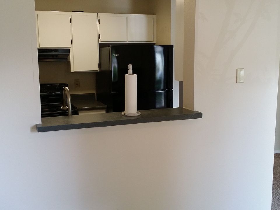 Wonderful ground floor, single-level end unit. Freshly painted with new carpet, faucets, toilet, counters, bathroom fan and appliances. Everything is new, clean and fresh. Updated Kitchen & Bathroom with new, premium Whirlpool appliances. Laundry in unit: Full Sized Whirlpool Duet stacked washer and dryer. Energy Saving LED lighting throughout the unit. Brand new, high efficiency water heater. New, super quiet; LED lit; Broan bathroom fan Wood burning fireplace in living room with FRENCH DOOR to patio. Dining area off kitchen. Sought after location. Close to Mariner Park & Ride, minutes to I-5, Boeing, shopping and BBQ One assigned parking space (#77) in addition to guest parking. Common area features outdoor pool right outside the unit plus club house and athletic court. Dogs ok but weight limit of 25 LBS per HOA rules Cats ok too. Come see why The Bunkhouse is a great place to live!