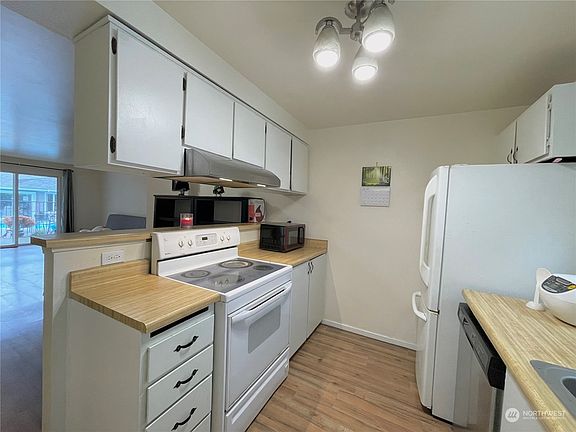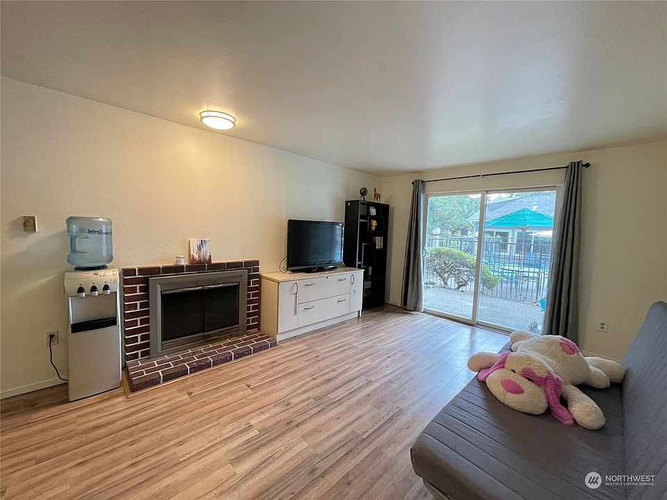 Fantastic open floor plan in this nicely updated 2 bedroom, 1.75 bath ground floor condo with NO rental cap! Wood burning fireplace in living room. Perfect location, close to Boeing, Easy I-5 access & located near shopping / schools / parks. Walking distance to park and ride, restaurants and various shops. Complex offers wonderful pool, cabana, and exercise areas for your convenience. Lots of Extra Parking is a bonus! Exterior 100% Renovated with new siding, roof, windows, and balcony! Low HOA dues. NO rental cap and NO special assessment. HOA includes Water/Sewer/Garbage/Common area maintenance.