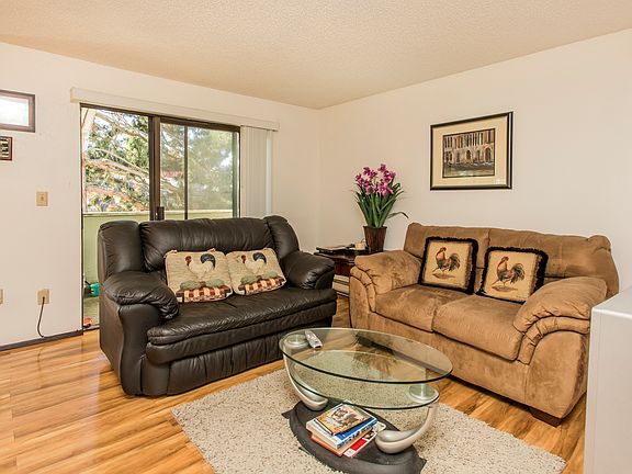 Exceptional top floor end unit is move-in ready with all new interior paint, updated flooring, SS appliances & Kitchen w/ pass-thru to dining area, living room with cozy fireplace and slider leading to new rear deck. Complex amenities include clubhouse, sports court, outdoor pool and lots of guest parking. COMPLEX EXTERIOR IS BEING COMPLETELY REDONE; NEW ROOF, SIDING, WINDOWS AND DECKS. All this and no rental cap in pet friendly complex.