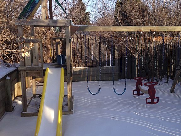 Super location on this 3 level split with large lot, terraced garden area, well, sprinklers and mature trees. Large deck of main floor and walk out from lower level. The interior features a large kitchen, oak cabinets, snack bar and hutch. There are 3 bedrooms and bath in upper level and the basement has large family room with fireplace. Includes shed and play set.