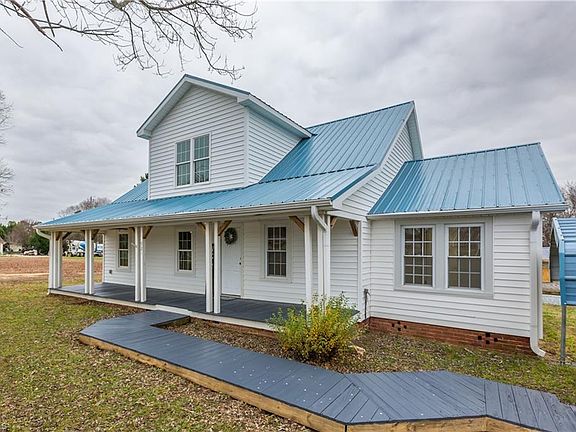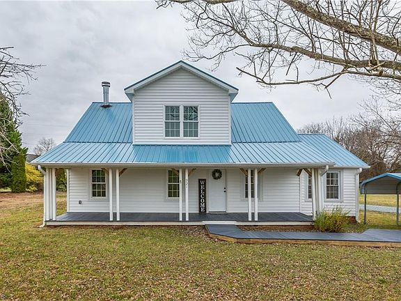 Beautiful, remodeled Farmhouse. Freshly interior paint, new flooring throughout main floor. New Appliances Updated Kitchen. remodeled second bathroom. Steel beams installed in Cellar by a structural repair company per structural engineer report. Fireplace in primary bedroom. Covered front and back porches to sit outside and enjoy the country setting. Two outbuildings and Garage with a carport in front. Country living not far from 85 and downtown Lexington. Come see it today.