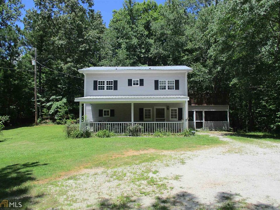 Four bedroom 2 bath home located on 1.93 acres. Private and secluded. Covered detached carport . Work shop, storage building. Nice covered front porch with side screened porch and an upper deck off master bedroom. Lots of kitchen cabinets. This is not located in a subdivision.
